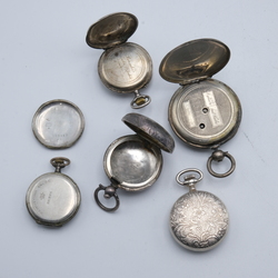 | Omschrijving | Lot van vier dameshorloges, waaronder zilveren exemplaren. Met daarbij een eerste gehalte (925/1000) Engels zilveren zakhorlogekast. |