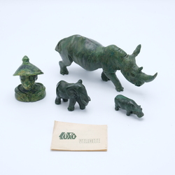 | Omschrijving | Lot van vier verdiet sculpturen: neushoorn, olifant, nijlpaard en afrikaanse man met hoed. Laatstgenoemde gemerkt 'verdite - A suro product - South Africa', olifant gemerkt 'Suxo verdite' |
