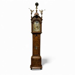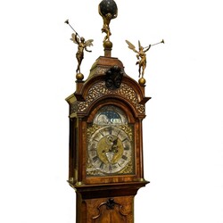 | Kavel | 221. 18e eeuws Amsterdams staand horloge in wortelnoten kast, Jan Chris Sauer |