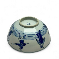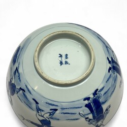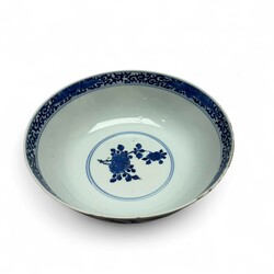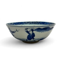 | Omschrijving | Een antieke 19e eeuwse Chinees porseleinen kom, met onderglazuur blauw-wit decor, aan de binnenzijde met rozen en een geometrisch randmotief, de buitenkant met decor van diverse krijgers. Aan de onderzijde gemerkt met vierkaraktermerk. |