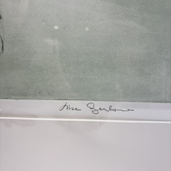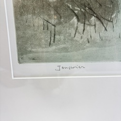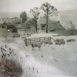 | Omschrijving | Kleurenets op papier, voorstelling van een kerk met boederijen en schapen op de voorgrond, titel 'Jouswier'. Rechtsonder gesigneerd Abe Gerlsma (Franeker 1919-2012). |