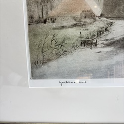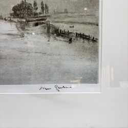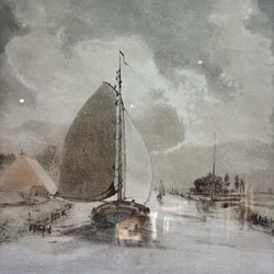 | Omschrijving | Kleurenets op papier, voorstelling van een zeilpraamk in een vaart, met links een boederij. Titel 'Ynthemasleat', rechtsonder gesigneerd Abe Gerlsma (Franeker 1919-2012). |