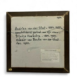 | Omschrijving | Schilderij, olieverf op doek. Portret van zijn vrouw, Trijntje Hoekstra (1884-1969). Rechtsonder gesigneerd Andries van der Sloot Andries van der Sloot (Schalsum 1883 – Leeuwarden 1955), gedateerd 1922. |