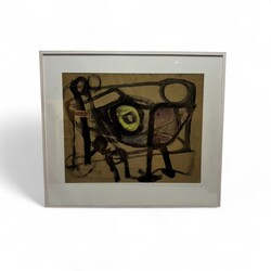 | Omschrijving | Gouache op papier. 'Zonder titel', ongesigneerd werk van Boele Bregman (Aengwirden 1918 – Heerenveen 1980) ca. 1965. Verso met echtsheidsverklaring C. Bregman - de Vries. |