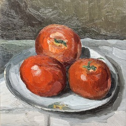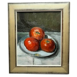 | Omschrijving | Schilderij, olieverf op paneel. Stilleven met drie tomaten op een bord. Rechtsonder (onduidelijk) gesigneerd Bouke van der Sloot (Franeker 1908 – Leeuwarden 1994), ca. 1930. |