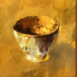 | Omschrijving | Schilderij, olieverf op paneel. Stilleven met kom, rechtsonder gesigneerd Dinie Boogaart (Sneek, 1963), gedateerd 1995. In zilverkleurige profiellijst. |