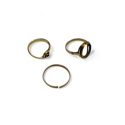 | Omschrijving | Lot van drie 20e eeuwse 14 karaats (585/1000) geelgouden ringen, één trouwring, één montuur voor kleine steen en één montuur voor grote steen of camee. |