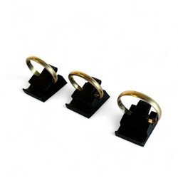 | Omschrijving | Lot van drie 20e eeuwse 14 karaats (585/1000) geelgouden trouwringen. Eén zonder inscriptie, gemerkt met oud eikenblaadje (1853-1953), één met inscriptie, gemerkt ‘Constant’ en ‘585’, en één zonder inscriptie of meesterteken. |