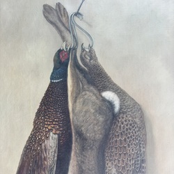 | Omschrijving | Schilderij, olieverf op doek. Jachtstilleven met haas, fazant en patrijs. Rechtsonder gesigneerd G.J. Adema (Franeker 1898 - Leeuwarden 1981). Verso met label kunsthandel Sanders, Leeuwarden. |