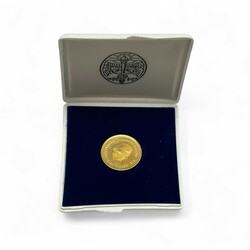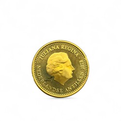 | Omschrijving | Een 20e eeuwse 21,6 karaats (900/1000) gouden 100 gulden munt van de Nederlandse Antillen (1978), geslagen door de Koninklijke Nederlandse Munt. Uitgegeven ter gelegenheid van het 25-jarig regeringsjubileum van Koningin Juliana. De munt toont het portret van Koningin Juliana en het wapen van de Nederlandse Antillen. In wit doosje. |