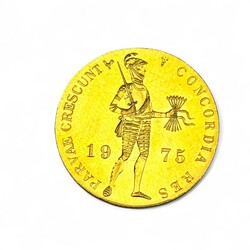 | Omschrijving | Een 20e eeuws 21,6 karaats (900/1000) gouden munt, Duit 1975, uitgegeven door de Koninklijke Nederlandse Munt als moderne herdenkingsslag van de traditionele Hollandse duit. D |