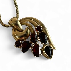 | Kavel | 195. Gouden hanger met granaat aan gouden collier |