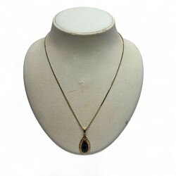 | Kavel | 67. Gouden hanger met granaat aan gouden collier |