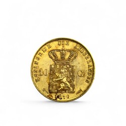 | Omschrijving | Een antieke gouden (900/1000) 10 Gulden munt (‘Gouden Tientje’), met opschrift ‘God Zij met Ons - Koning Willem de Derde’ en ‘Koninkrijk der Nederlanden 10G’, jaartal 1876. |