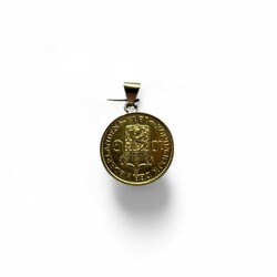| Omschrijving | Een hoog gehalte (900/1000) geelgouden hanger, gemaakt van een Gouden Tientje, 1912. Met 14 karaats (585/1000) oogje |
