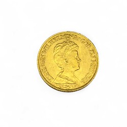 | Omschrijving | Een antieke gouden (900/1000) 10 Gulden munt (‘Gouden Tientje’), met opschrift ‘Koninkrijk der Nederlanden 10 G’ & ‘Koningin Wilhelmina - God Zij met Ons’. |