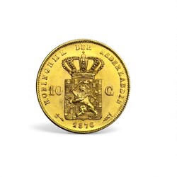 | Omschrijving | Een antieke gouden (900/1000) 10 Gulden munt (‘Gouden Tientje’), met opschrift ‘God Zij met Ons - Koning Willem de Derde’ en ‘Koninkrijk der Nederlanden 10G’, jaartal 1876. |
