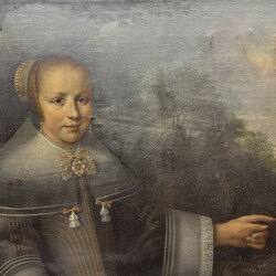 | Omschrijving | Schilderij, olieverf op doek. Portret van een voornaam meisje met een dorp op de achtergrond. Ongesigneerd, Hollandse School 17e eeuw. |