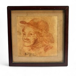 | Omschrijving | Roodkrijttekening op papier, portret van een man met hoed. Draagt signatuur 'R'Hoven' en datering '1690', Hollandse School 17e/18e eeuw. |