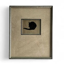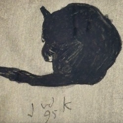 | Omschrijving | Tekening op papier, voorstelling van een zittende poes. Middenonder gesigneerd Jan van der Kooi (Groningen, 1957), gedateerd 1995. |
