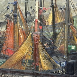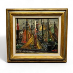 | Omschrijving | Schilderij, olieverf op doek. Voorstelling van de vissershaven van Blankenberge. Linksonder gesigneerd Jef de Pauw (Schaarbeek 1894 - Etterbeek 1947), ca. 1930. |