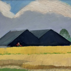| Omschrijving | Schilderij, olieverf op paneel. Landschap met schuur en graanveld. Rechtsonder gesigneerd Jentsje Popma (Zwolle 1921 – Leeuwarden 2022), gedateerd 2001. In originele lijst. |