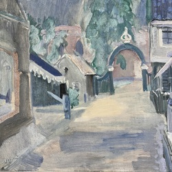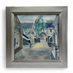| Omschrijving | Schilderij, olieverf op doek. Voorstelling van de Hoofdstraat in Grou, met op de achtergrond de Kerkhofspoort bij de Sint Piterkerk. Linksonder gesigneerd Johan Dijkstra (Groningen 1896 - 1978). Herkomst: familie Ellensk Jonker, bevriend met de vrouw van Johan Dijkstra. Met daarbij enige documentatie, o.a. post van Johan Dijkstra, een ansichtkaart met foto van zijn atelier uit 1921, een foto van Johan Dijkstra en Marie van Veen etc. |
