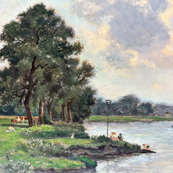 | Omschrijving | Schilderij, olieverf op boardpaneel. "Zwempartij aan de IJssel" rechtsonder gesigneerd Johan Elsinga (1893-1969). |