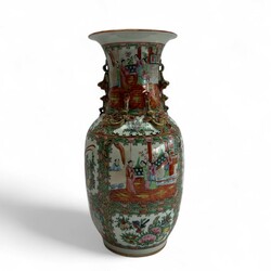 | Omschrijving | Chinese Canton-vaas (19e eeuw), rijk gepolychromeerd met figuurscènes, flora en fauna; appliqué-handvatten in de vorm van dieren |