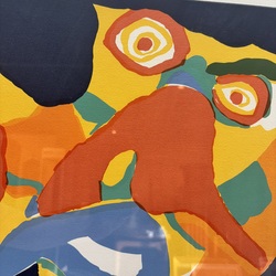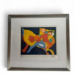 | Omschrijving | Zeefdruk op papier, abstracte compositie. Rechtsonder gesigneerd Karel Appel (Amsterdam 1921 - Zürich 2006), en linksonder gemerkt E.A. (épreuve d’artiste, proefdruk). |