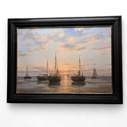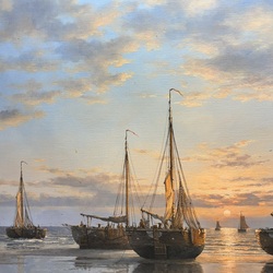 | Omschrijving | Schilderij, olieverf op doek. Bomschuiten op het strand van Scheveningen bij zonsondergang. Rechtsonder gesigneerd Sterkenburg (Harlingen 1955 - Zurich 2000), vermoedelijk ca. 1990. |