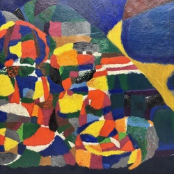 | Omschrijving | Schilderij, olieverf op doek. Abstracte compositie, titel 'kleurig landschap', door Wim Kersten (Amsterdam 1908-1974), ca. 1960. |