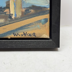 | Omschrijving | Schilderij, olieverf op doek. Havengezicht, verso gesigneerd Wim van der Veer (Leeuwarden, 1939). In zwarthouten baklijst. |