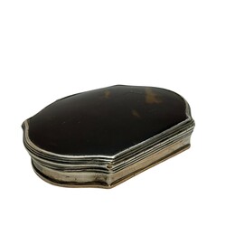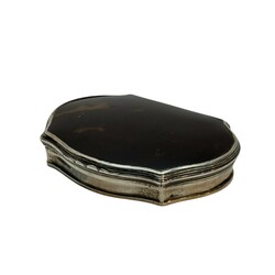 | Omschrijving | 18e eeuwse zilveren snuifdoos, onder meer versierd met schidpad deksel |