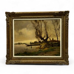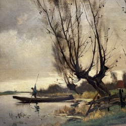 | Omschrijving | Schilderij, olieverf op doek. Polderlandschap met boer in praam. Linksonder gesigneerd Adrianus (‘Arie) Johannes Zwart (Rijswijk 1903 – Laren 1981). In vergulde ornamentenlijst. |
