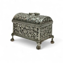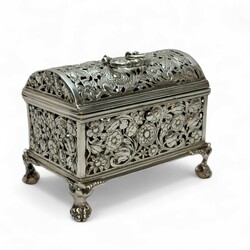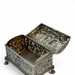 | Kavel | 45. Antiek zilveren knottenkistje met opengewerkt decor |