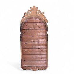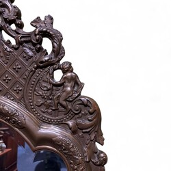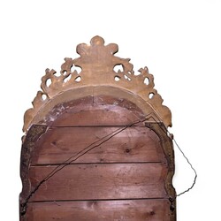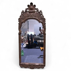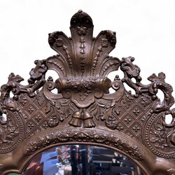 | Omschrijving | Grote gefacetteerde spiegel in gebronsde classicistische lijst, de kuif met putti en rocailles, 20e eeuw |