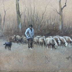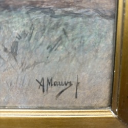 | Omschrijving | Anton Mauve (1838-1888). Aquarel. met couach op papier. Herder met hond en kudde. Gesigeerd. In een originele vergulde lijst achter glas. |