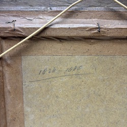 | Conditie | In goede conditie, papier iets bruin. Lijst hoeken beschadigd. |