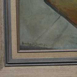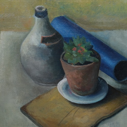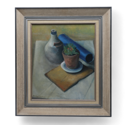 | Omschrijving | Schilderij, olieverf op board. "Stilleven met o.a. plantje op snijplank". Linksonder gesigneerd Bouke van der Sloot (Franeker 1908 – Leeuwarden