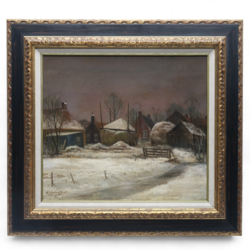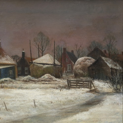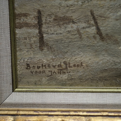 | Omschrijving | Schilderij, olieverf op board. "Winter Snakkeburen". Linksonder gesigneerd Bouke van der Sloot (Franeker 1908 – Leeuwarden 1995), met opschrift ‘voor Janny’ |