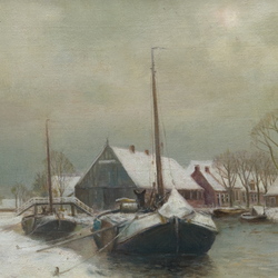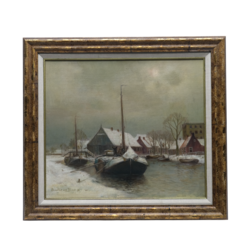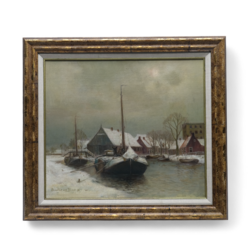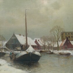 | Omschrijving | Schilderij, olieverf op board. "Winter Schilkampen, Leeuwarden". Linksonder gesigneerd Bouke van der Sloot (Franeker 1908 – Leeuwarden 1995), gedateerd 1981. |