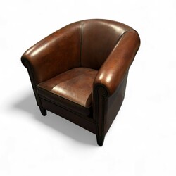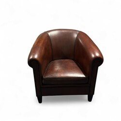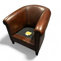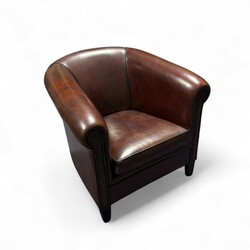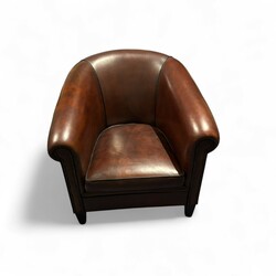 | Kavel | 83. Bruin leren clubfauteuil, Lounge Atelier, model 'Tower' |