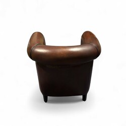 | Omschrijving | Een 20e eeuwse donker leren clubfauteuil, op vier houten poten, met zwarte bies en siernagels op de randen. Onder het kussen gemerkt 'Lounge Atelier', model 'Tower'. |