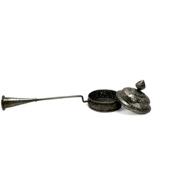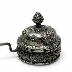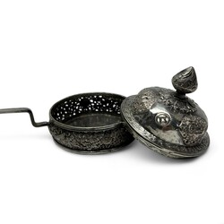 | Omschrijving | BWZG Chinees zilveren wierookbrander, rondom gedecoreerd met kostbaarheidssymbolen en florale motieven, niet gekeurd, 19e eeuw |