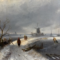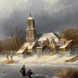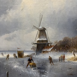 | Omschrijving | Schilderij, olieverf op doek. Winterlandschap met figuren op het ijs, rechtsonder gesigneerd Charles Leickert (1816-1907) en gedateerd ‘87 |