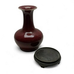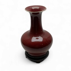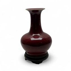| Omschrijving | Chinees porseleinen sang de boeuf vaas, modern, op houten basement. |