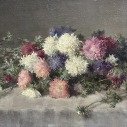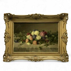 | Omschrijving | Schilderij, olieverf op doek. Bloemstilleven. Linksonder gesigneerd Chris van der Windt (Sint-Jans-Molenbeek 1877 – Leiden 1952), gedateerd 1950. |