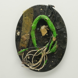 | Omschrijving | Wandobject 'Tableau-Piege (der fallengelassene Zufall des Abfalls)', gedateerd 1971, oplage nr. 93/100. |