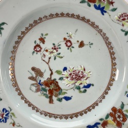 | Kavel | 54. Drie 18e eeuwse Famille rose borden |